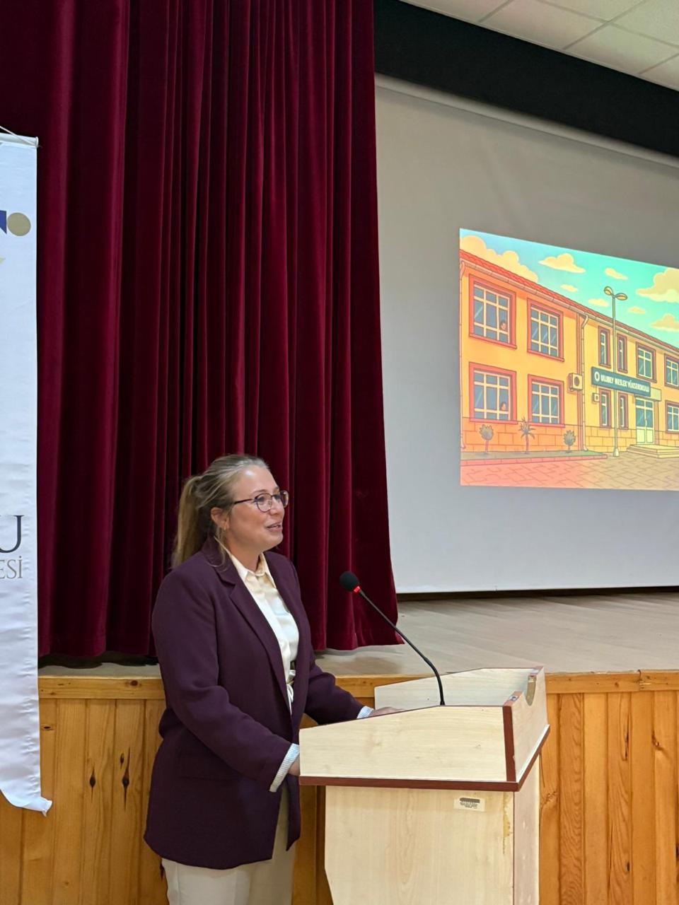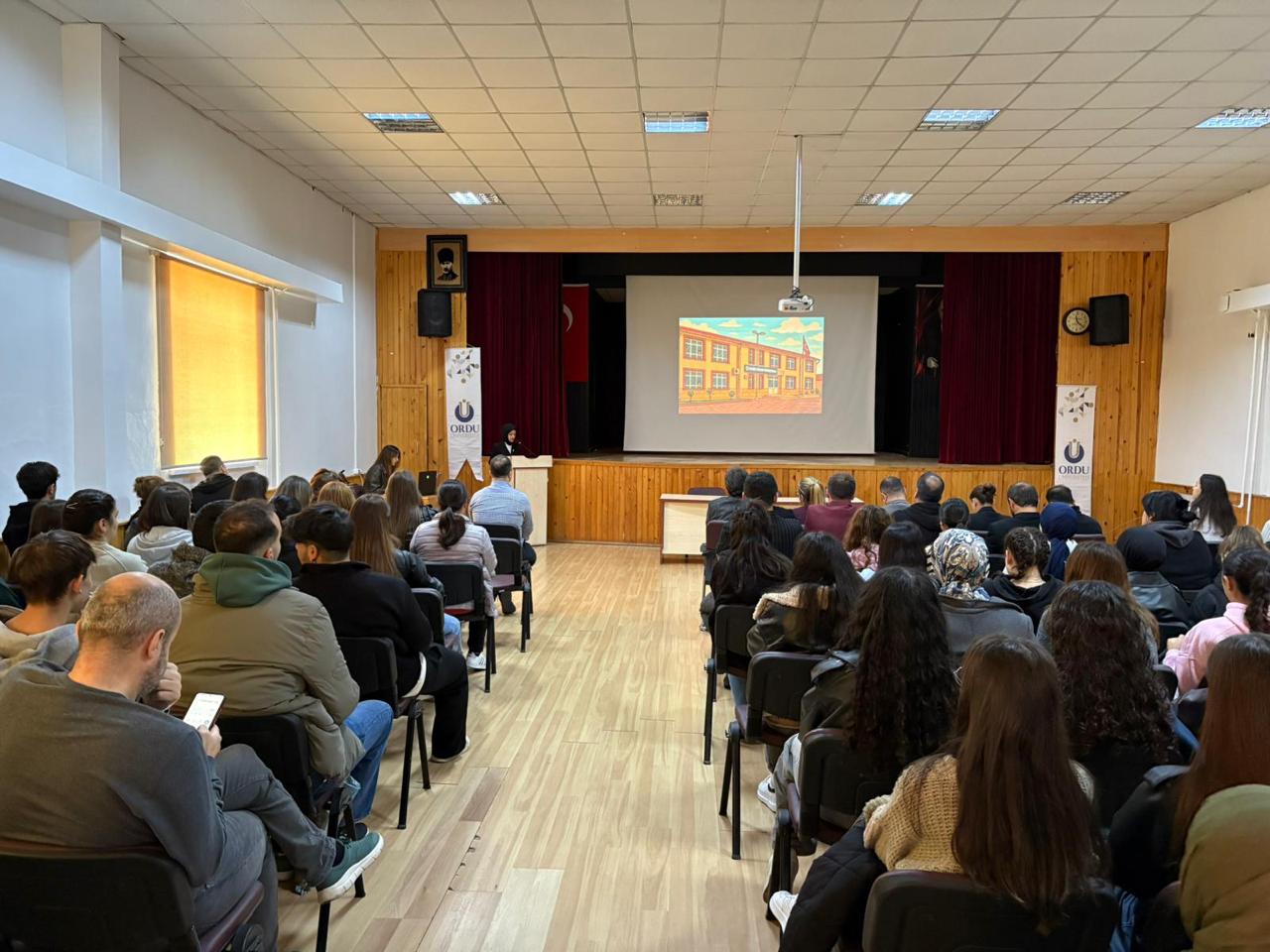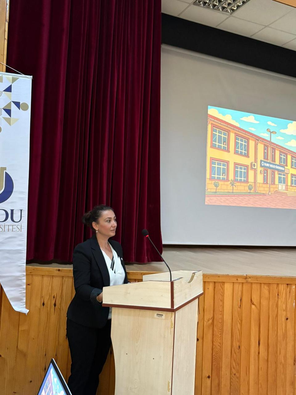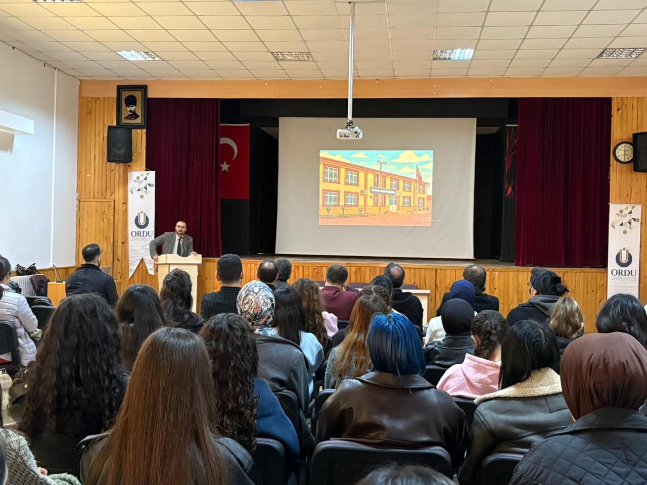 Müdür Yardımcımız Dr. Öğr. Üyesi Kalbiye Konanç’ın ardından Öğrenci İşlerinden Sorumlu Müdür Yardımcımız Öğr. Gör. Dr. İlkay Uğur kürsüye gelerek öğrencilere kapısının her zaman açık olduğunu belirterek “Ailenizden uzaktasınız ancak bizler yanınızdayız. Herhangi bir sonunuz olduğunda benimle, danışmanlarınızla ve bölüm hocalarınızla rahatlıkla iletişim kurabilirsiniz. Bizler sizin için buradayız.” şeklinde konuştu.