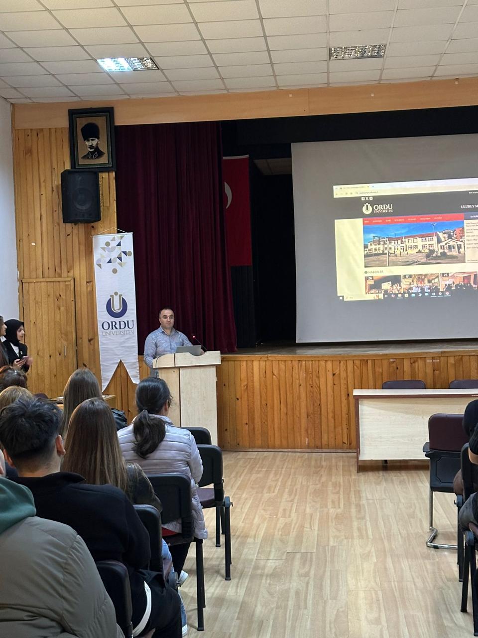 Müdür Yardımcımız Öğr. Gör. Dr. İlkay Uğur’un ardından öğrenci işleri süreçleriyle ilgili bilgi vermek amacıyla Bilgisayar İşletmeni Uğur Karayanık detaylı bir sunum gerçekleştirerek, ders seçme, sınav süreçleri, yatay geçiş ve staj işleri gibi konularda bilgi verdi. Web sayfasındaki form ve bilgilere nasıl ulaşılacağına dair de uygulamalı bir anlatım gerçekleştirdi.