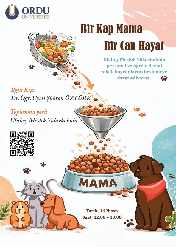 Yüksekokulumuz öğrencilerinin akademisyenlerimizle birlikte İlçemizdeki sokak hayvanlarına mama desteği sunduğu etkinlik kapsamında, Altınordu Belediyesi tarafından kurulan mama fabrikasında üretilen mamalar temin edilerek belirlenen bölgelerde sokak hayvanlarına ulaştırıldı.